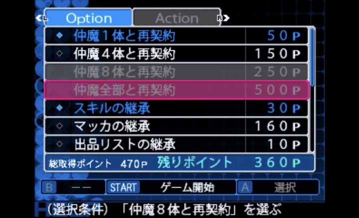 この特典によって、2周目に新たな仲魔と戦ったり合体解放されたりできるようになるので、1〜2周では全ての悪魔を仲魔に加えたりすることはできないのだ。もどかしい。もどかしいけど楽しい。